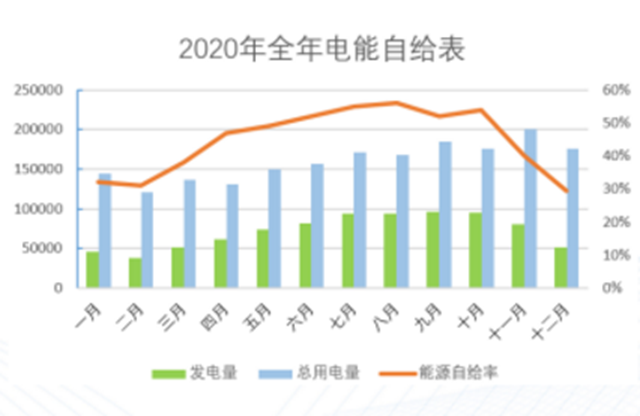 商丘睢县第三污水处理厂是一个污水概念厂,采用DANAS干式厌氧发酵技术,对有机废弃物协同处理和资源化利用,综合解决区域内有机废弃物的污染问题,生产生物天然气和有机肥等资源化产品。每天的沼气量能达到2500立方米。睢县的资源化循环效益非常好,全年电能自给率>45%,从2020年全年的电量自给表就能看出来。